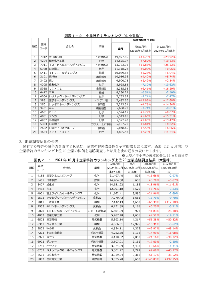 ▶YK値による企業特許力ランキング_2025年10月度(PDF)